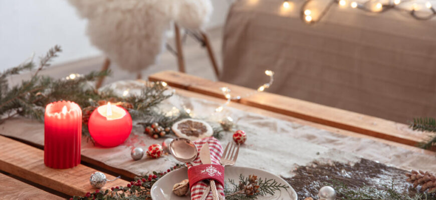 - Атмосферные напитки. Безалкогольный глинтвейн из сока с пряностями или морс из замороженных ягод создадут праздничное настроение.