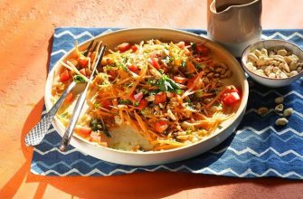 Салат с моцареллой, пшеном и абрикосами радует глаз