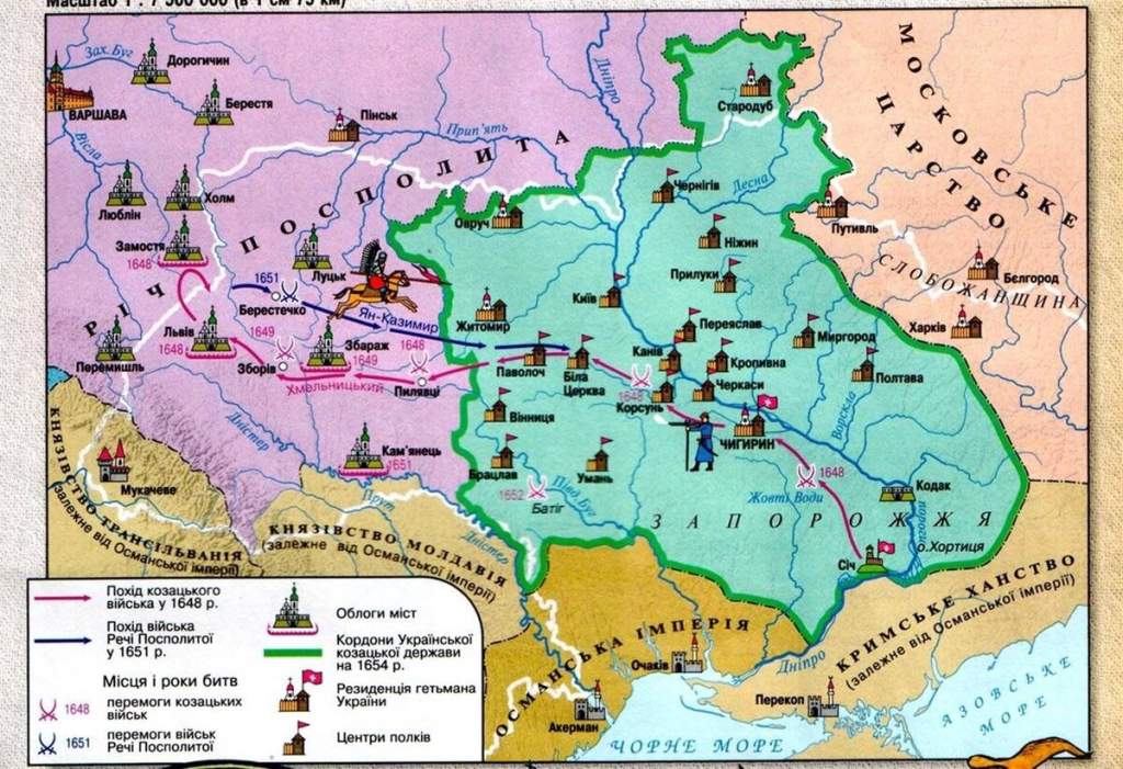 Также как ясно было, что без посторонней помощи от власти католической Польши Украине не избавиться. Он вел одновременно переговоры с Османской Турцией, Россией и Швецией о том, чтобы перейти под их власть.