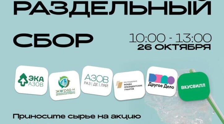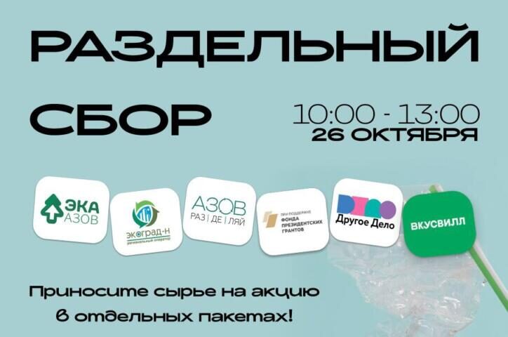 В ближайшее воскресенье, 26 октября, жители города смогут сдать на переработку накопившееся вторсырье. На площади перед ТЦ «Семь ветров» с 10:00 до 13:00 будет организована масштабная экологическая акция «Раздельный сбор».
