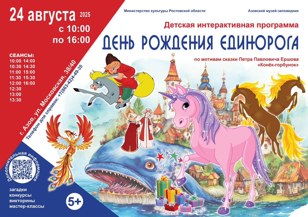 Гости праздника посетят 6 интерактивных площадок, встретятся с персонажами сказки П. П. Ершова «Конек-Горбунок», погрузятся в атмосферу России XIX века, попробуют разгадать тайну донского единорога, примут участие в викторинах и веселых конкурсах, создадут свои шедевры на мастер-классах по рисованию, моделированию, оригами и сборке сюжетных пазлов, расширят знания об устройстве традиционного русского дома и познакомятся с забытыми словами.