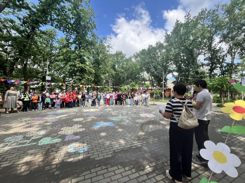 Но на этом праздник не закончился! Дети превратили серый асфальт в красочную летнюю полянку, рисуя мелом цветы и солнце. А в завершение всех ждали сладкие подарки – воздушные мыльные пузыри и вкуснейшее мороженое!