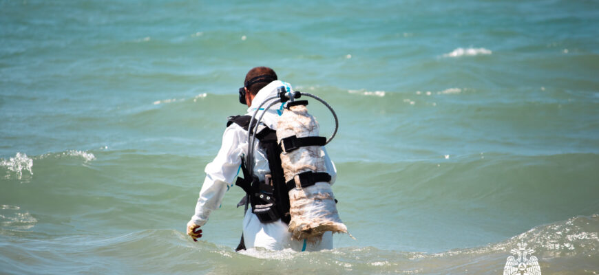 Ситуация осложняется тем, что из-за майских штормов мазутные пятна оказались покрыты песком на глубину от 0,5 до 4 метров. Водолазы МЧС России работают на нескольких участках, используя метод эжекции* для исследования грунта на глубине до 2 метров. При обнаружении нефтепродуктов специалисты проводят размывку грунта. Затем мазут собирают вручную в специальные мешки, которые поднимают на поверхность с помощью грузовых корзин.