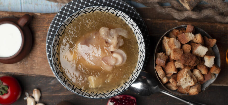 Такой бульон — это база для супов (особенно для борща или рамена), соусов или самостоятельное блюдо. Он богат коллагеном, желатином и аминокислотами. Главный показатель качества — если после охлаждения в холодильнике бульон застывает в плотное желе