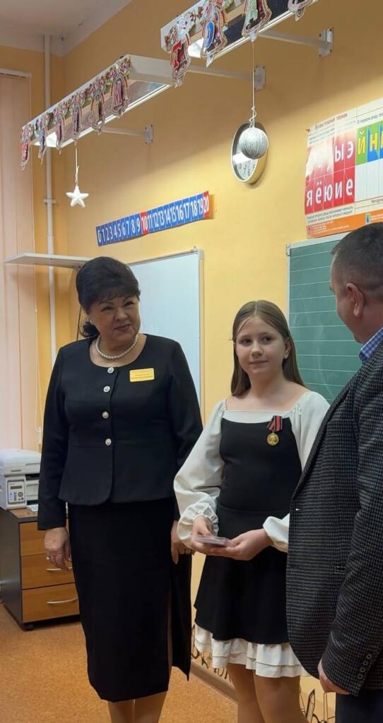 12 января командир отряда «Балтика» и глава Пешковского сельского поселения Ковалев А.В. провели торжественную церемонию награждения ученицы 5 «Б» класса МБОУ Пешковская СОШ Барановской Миланы (волонтерский позывной «Ангел»).
