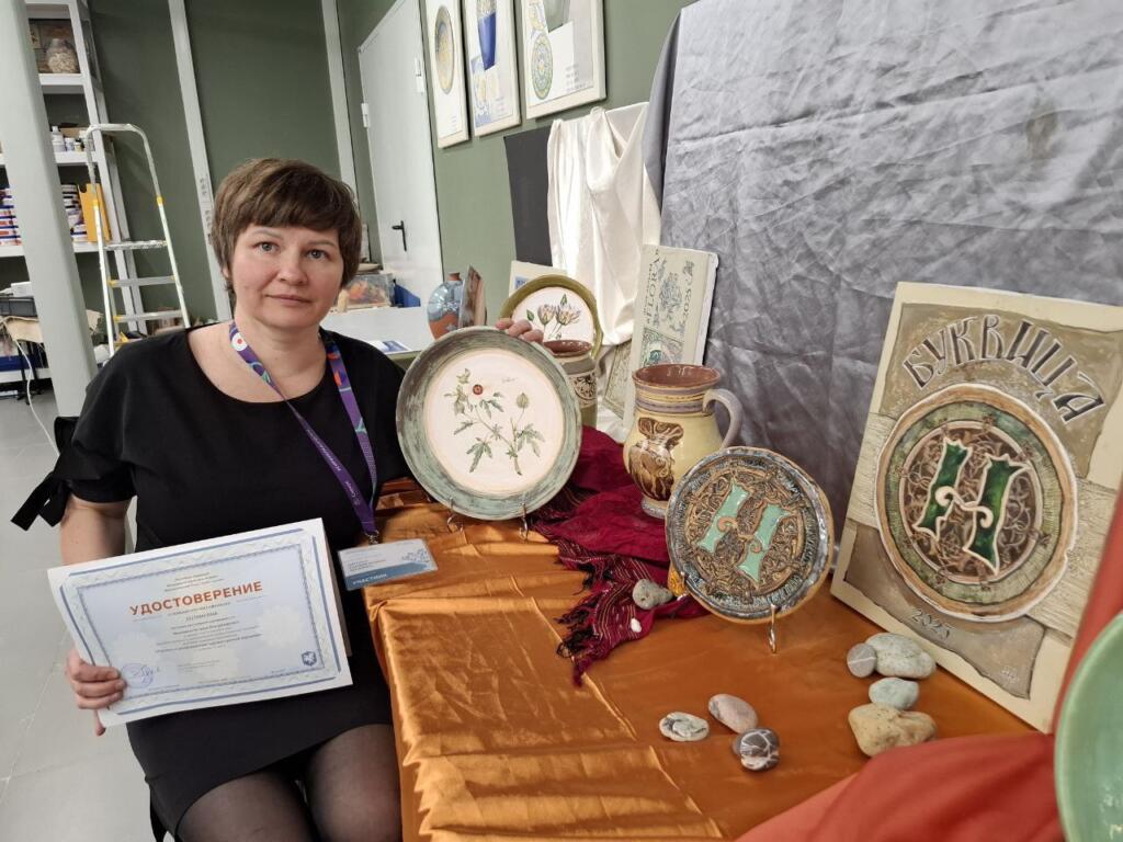 Освоив технику росписи керамики глазурью и эмалями, она задумала проект, который реализует с учениками старших классов Азовской ДХШ в новом учебном году. Детали и форма будущего произведения искусства пока в стадии разработки, но уже известно, что оно будет посвящено городу Азову.
