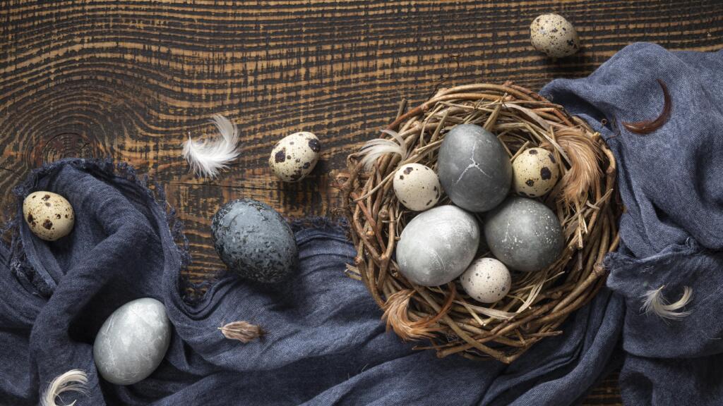 • Как сделать: Соберите шелуху (чем её больше, тем темнее цвет). Залейте водой и варите 30–40 минут. Отвар процедите, посолите (чтобы яйца не лопнули), опустите туда яйца и варите 10–12 минут. Для мраморного эффекта: сырые яйца обваляйте в мелко накрошенной влажной шелухе, заверните в марлю и варите.