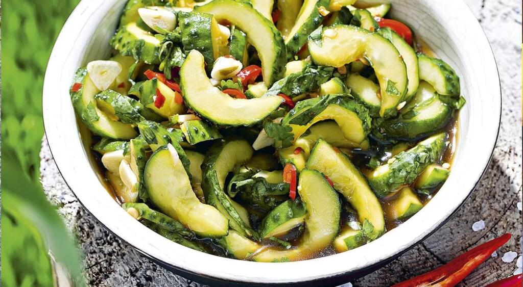 Чтобы приготовить такой оригинальный специалитет, вам потребуются свежий огурец, чеснок, перец чили, кинза, соевый соус и всего 10 минут на весь процесс готовки. При желании можно добавить в маринад немного семечек кунжута — именно так готовят свои знаменитые битые огурцы китайцы. Подавайте ароматные маринованные огурцы к любому мясу, к шашлыкам — обязательно. Хороши они будут также с вареной или запеченной картошкой.
