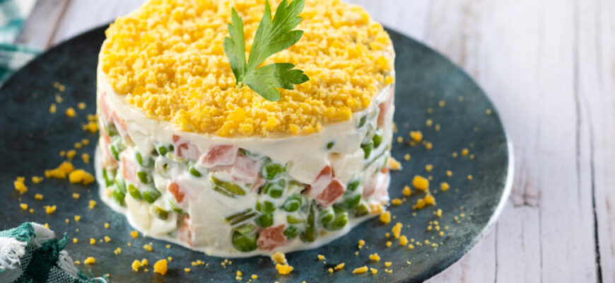 Приятного аппетита! Ваш салат получится нежным, сытным и станет украшением стола.