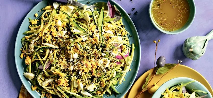 Если вы давно не удивлялись салатам, сейчас самое время! Салат с варёными яйцами и кабачком – это быстрый и лёгкий обед или ужин для жаркого летнего дня.