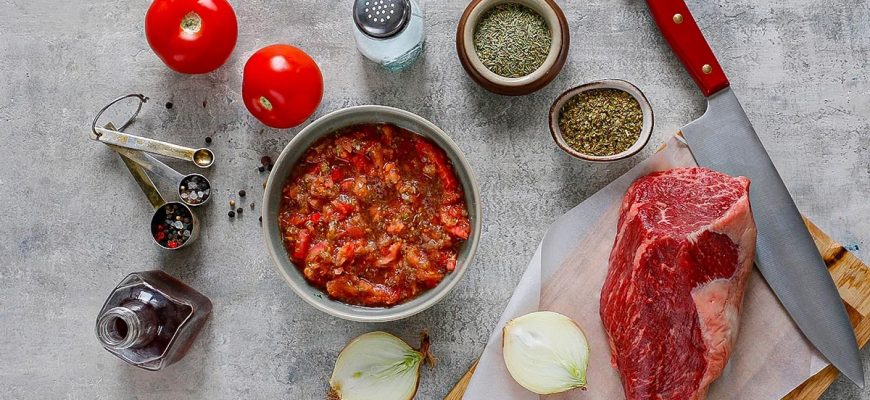 В сезон гриля под рукой всегда должен быть рецепт простого маринада, способного сделать мясо мягким и нежным. Говядина в этом плане сложнее свинины, но с ней отлично работает томатный маринад. Чтобы его приготовить, нужно выбрать ароматные, но не слишком сладкие помидоры. Обычно для таких целей подходит сорт сливка.