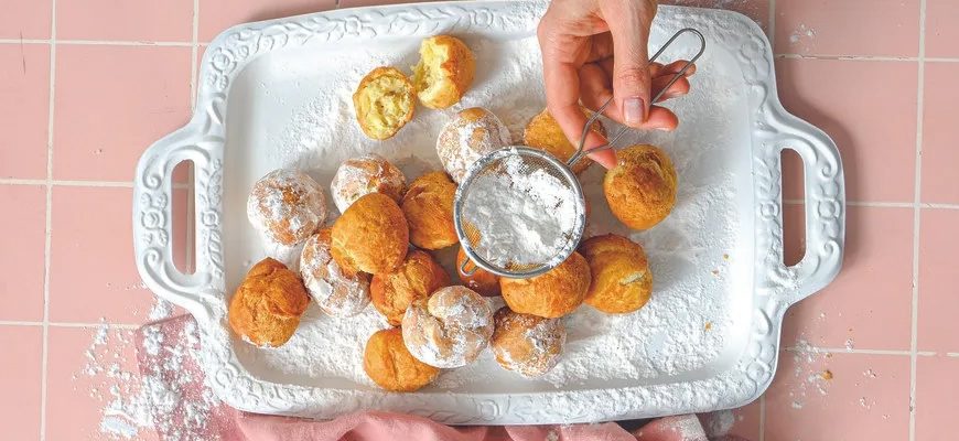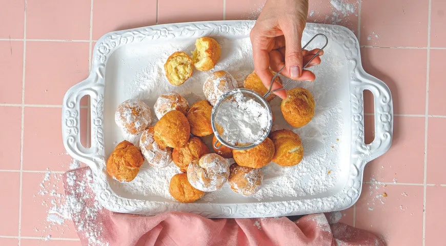 Формат пышки без дырочки также упрощает процесс: скатали руками шарики размером с грецкий орех и отправили в сотейник с разогретым маслом. Кстати, любопытный факт, связанный с формой и ее названием, которое выпечка получила от польского слова pączek – бутон, почка. Внешнее сходство между жаренными во фритюре пирожками без начинки и бутончиками действительно есть.