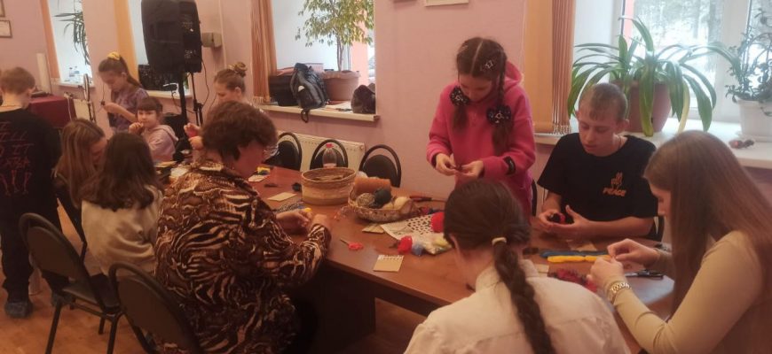Под руководством мастера Евгении Князевой дети и их родители погрузились в мир творчества, создавая из шерстяных ниток очаровательных птичек — синичек, воробышков и снегирей.