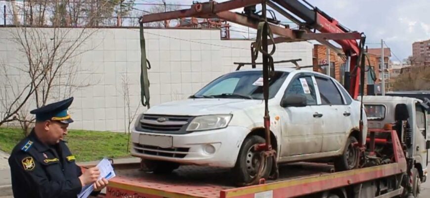 При выявлении автотранспортного средства должника на автомобиль устанавливается блокирующее устройство, на лобовом стекле размещается информация, что владелец является должником, после чего машина помещается на специализированную стоянку.