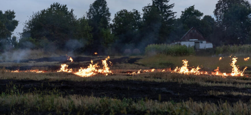 В Азовском районе на окраине хутора Лагутник из-за падения обломков БПЛА произошло возгорание сухой травы. Пожар был оперативно ликвидирован.