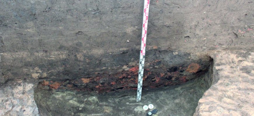 К счастью для археологов, в одном из отрезков рва в его засыпи было обнаружено большое количество обломков камня и кирпича. Многие из них с останками известкового раствора. Это позволяет ученым предполагать, что за рвом строилась стена из камня и кирпича. К сожалению, исследователи не могут определить, насколько высокой была эта стена.
