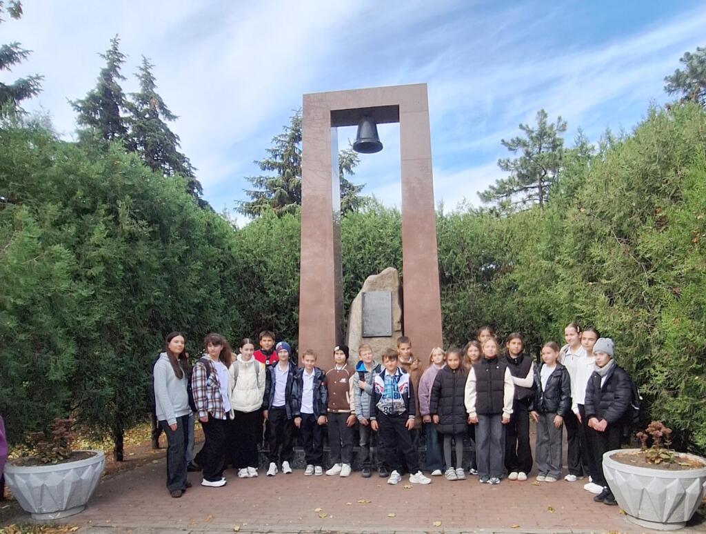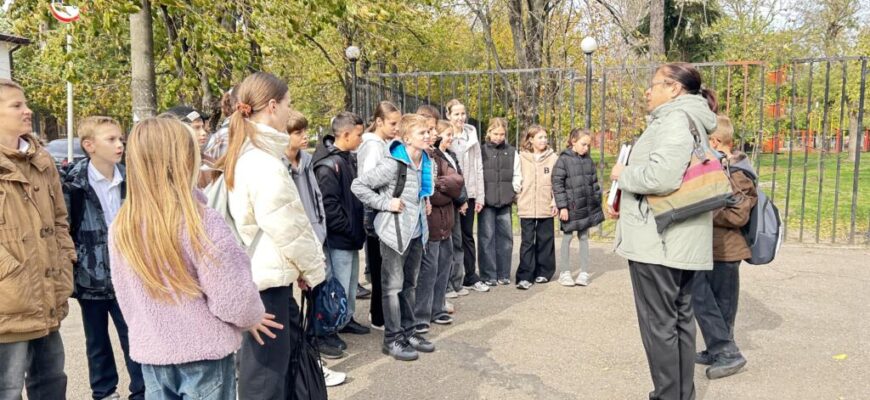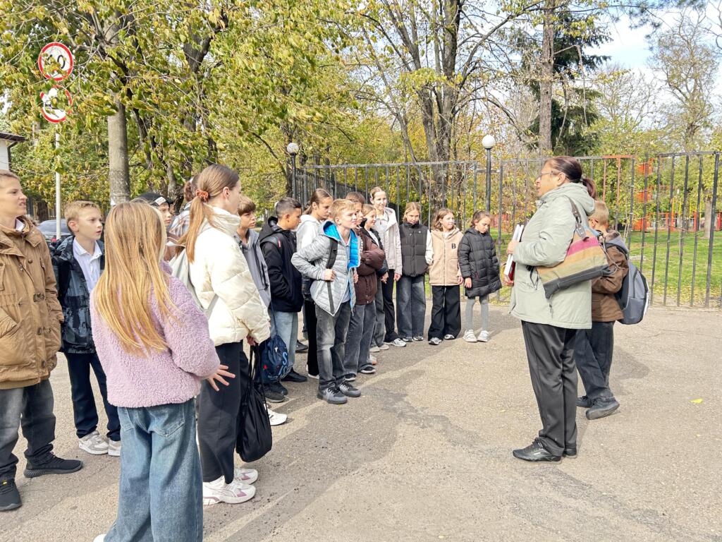Наша совместная экскурсия началась у главного входа в Азовскую школу №1. Ученикам 5 «Г» класса под руководством советника по воспитанию и взаимодействию с детскими и молодёжными объединениями Аллы Юрьевны Гупал предстояло узнать много новой и важной информации.