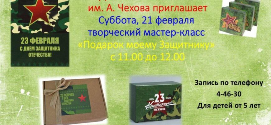 Детская библиотека имени А.П. Чехова приглашает юных жителей города на праздничный мастер-класс, приуроченный ко Дню защитника Отечества