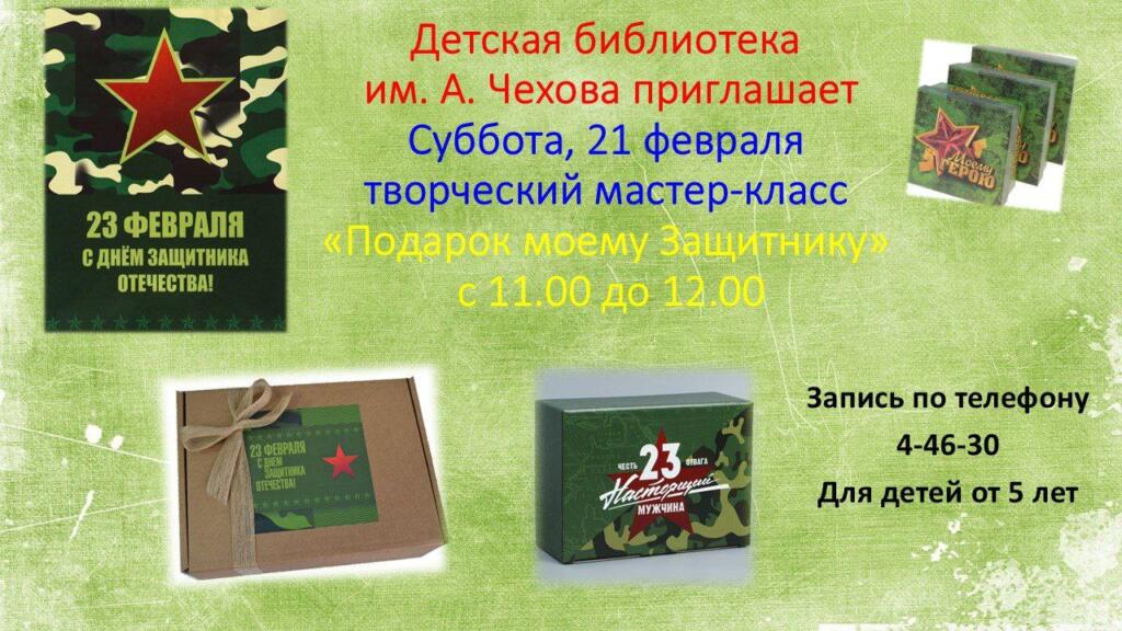 Детская библиотека имени А.П. Чехова приглашает юных жителей города на праздничный мастер-класс, приуроченный ко Дню защитника Отечества