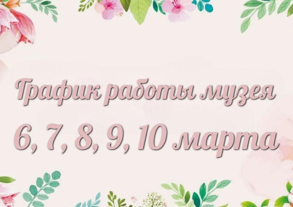 В субботу, воскресенье и понедельник — 7, 8 и 9 марта — главные экспозиции музея будут работать для посетителей в привычном режиме: с 10:00 до 18:00. Кассы будут открыты до 17:30 .