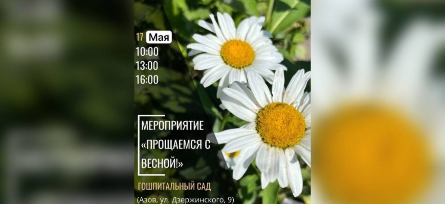 17 мая (суббота) на территории музейного комплекса «Госпитальный сад» (адрес: ул. Дзержинского, 9) пройдёт тематическое мероприятие, посвящённое проводам весны. Сеансы запланированы на 10:00, 13:00 и 16:00.