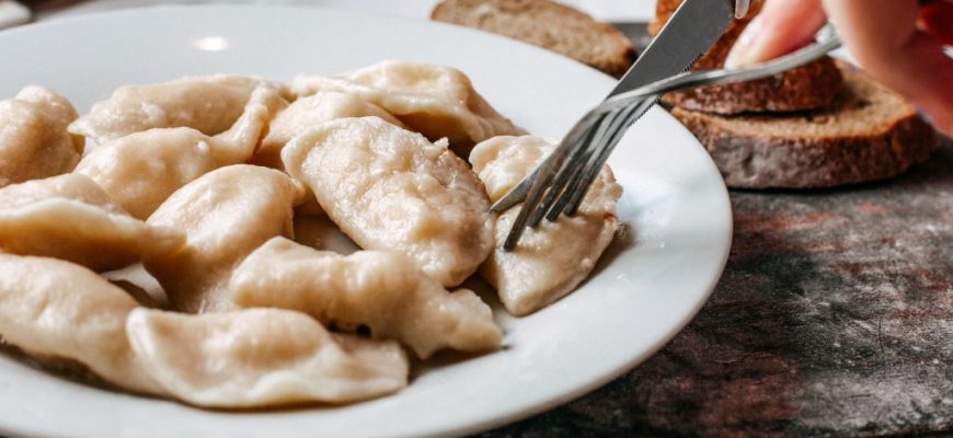 Вот классический рецепт вареников с картошкой и жареными грибами. Тесто получается нежным, а начинка — ароматной и сытной