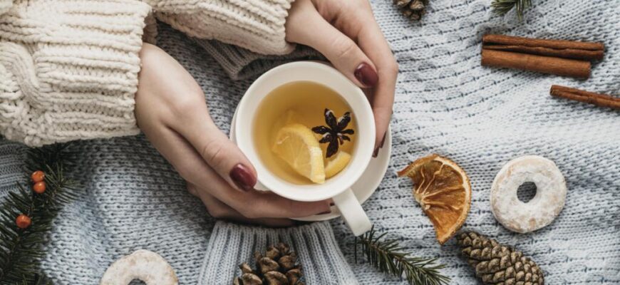 - Пряный «Огненный» (от простуды): Увеличьте количество имбиря, добавьте щепотку кайенского перца или пару долек чеснока (он почти не чувствуется в общем букете, но хорошо помогает). Пить очень горячим.