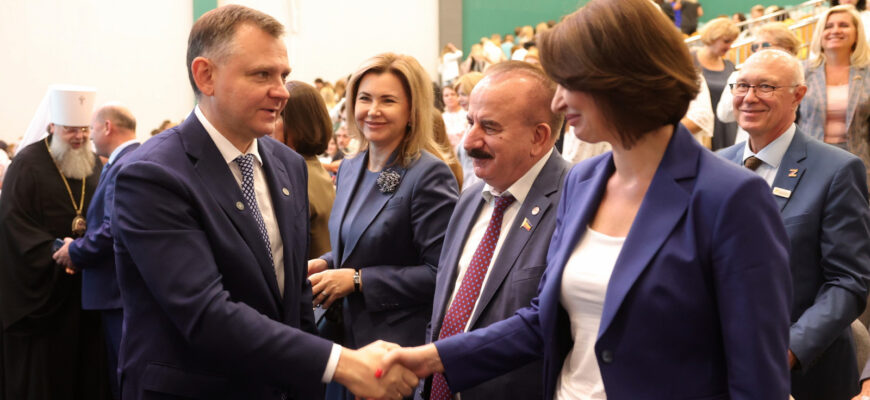 В своем обращении министр особо затронул тему подготовки Стратегии развития образования. Он подчеркнул, что в документе в качестве ключевых целей зафиксировано построение суверенной системы образования и сохранение лучшего накопленного опыта.