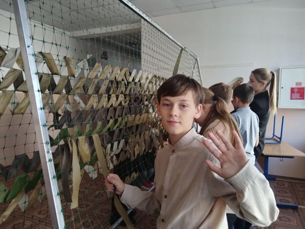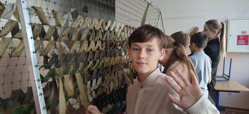 В рамках пректа «Я – волонтер» в Семибалковской СОШ Азовского района, ученики плетут маскировочные сети