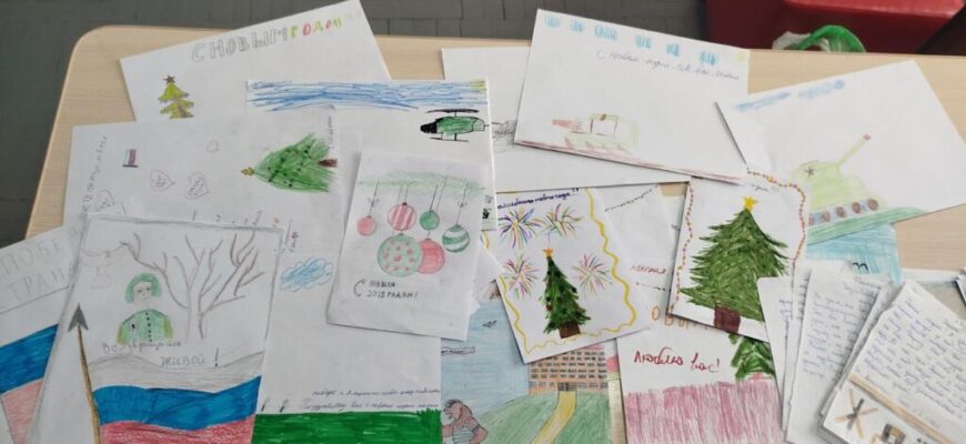 Кроме того, ребята 5-6 классов написали письма и нарисовали рисунки, участвуя в акции «Новогоднее поздравление солдату».