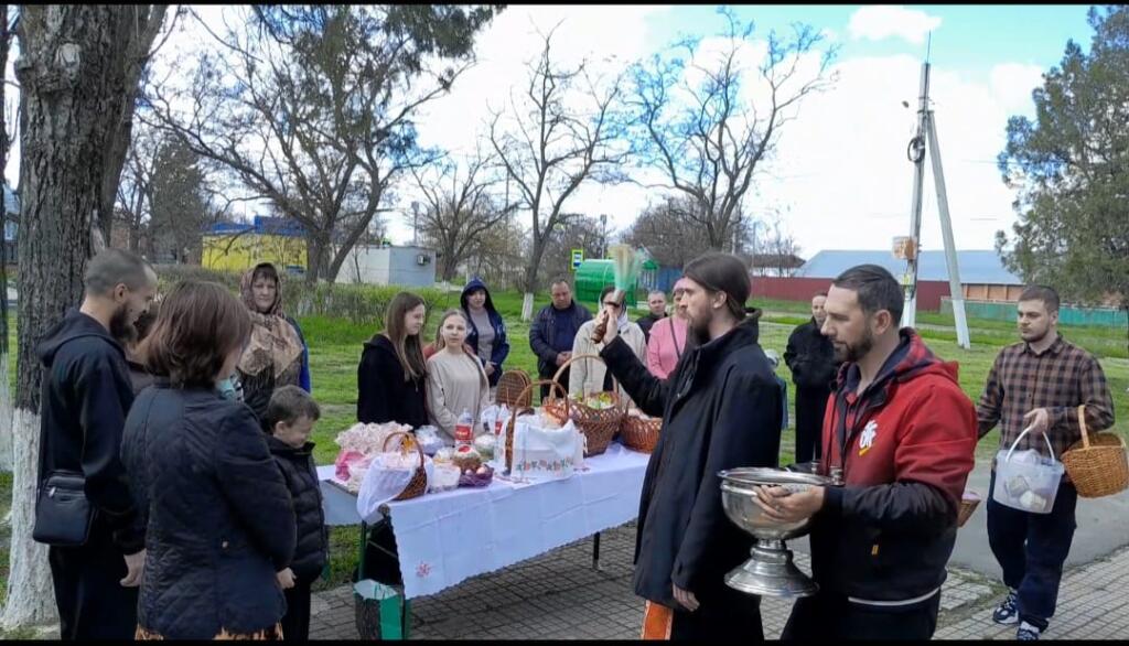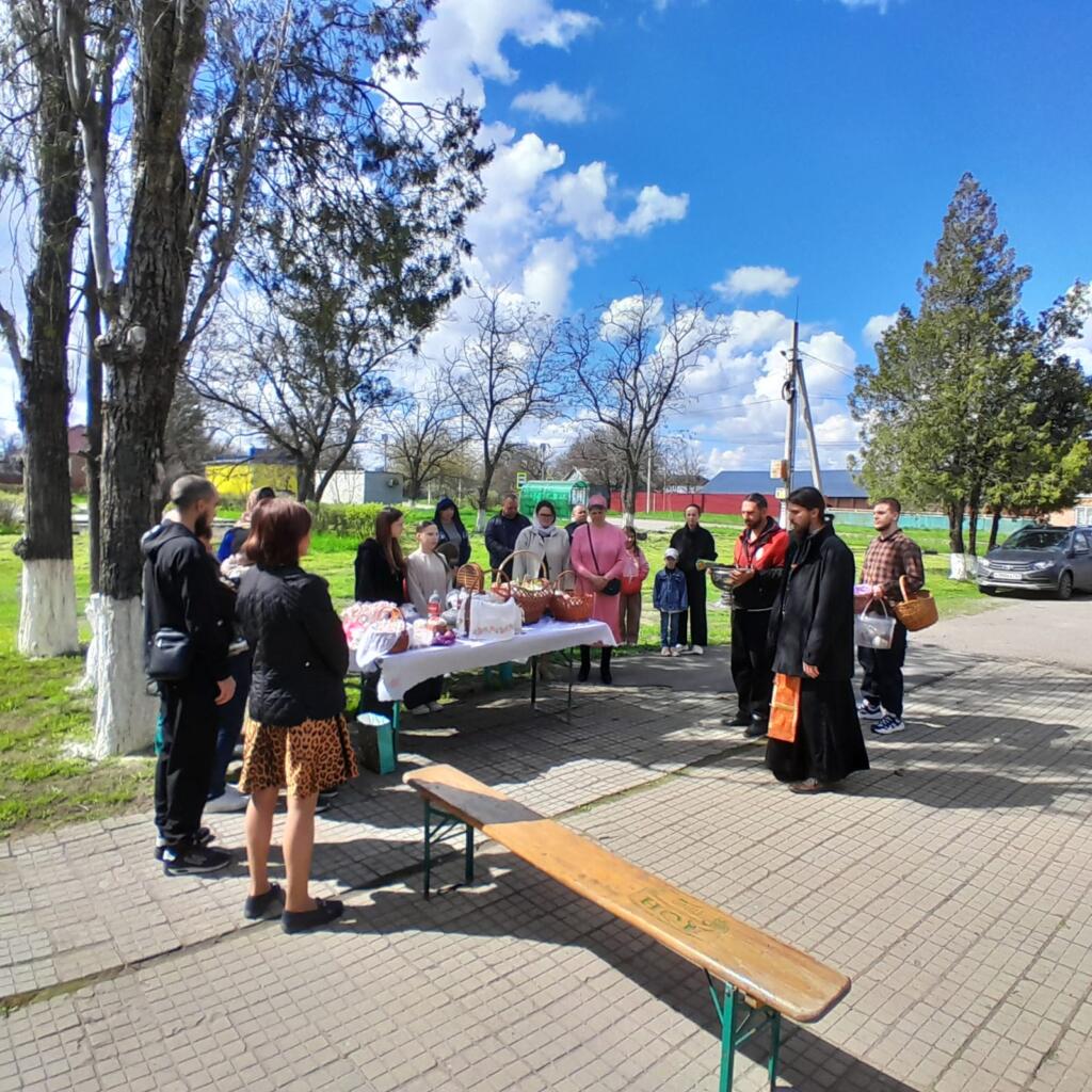 В назначенный день священнослужители приехали в Платоно-Петровку, чтобы совершить молитву и благословить принесённые жителями куличи, пасхальные яйца и другую праздничную снедь. Во время чинопоследования звучали пасхальные молитвы, которые напоминали о главном событии христианского календаря — Воскресении Господа Иисуса Христа.