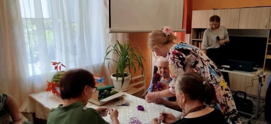 Особый интерес у подопечных дома престарелых вызвал мастер-класс по изготовлению декоративных цветов из ниток. Под руководством гостей самые активные участники с удовольствием осваивали новое творческое направление. Этот процесс стал не только способом создания ярких сувениров, но и поводом для содержательного, душевного общения между артистами и пожилыми людьми.