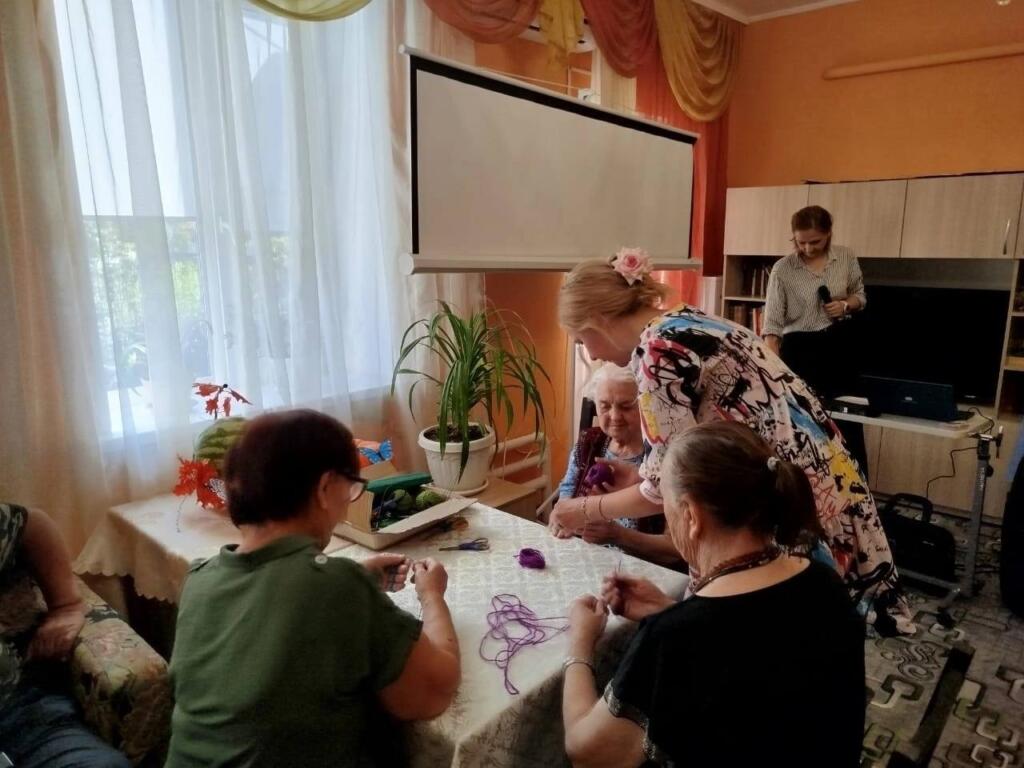 Особый интерес у подопечных дома престарелых вызвал мастер-класс по изготовлению декоративных цветов из ниток. Под руководством гостей самые активные участники с удовольствием осваивали новое творческое направление. Этот процесс стал не только способом создания ярких сувениров, но и поводом для содержательного, душевного общения между артистами и пожилыми людьми.