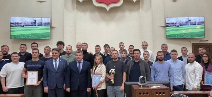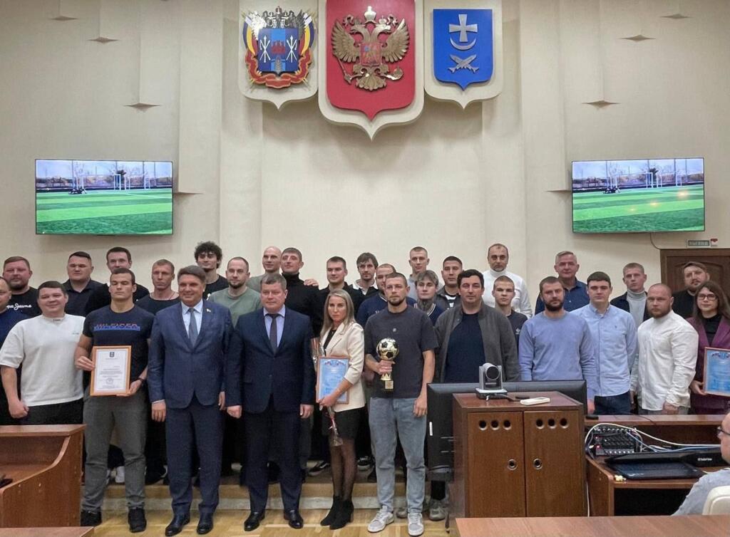 В администрации города Азова состоялось торжественное собрание, посвящённое победе местной футбольной команды «Азов» в Первенстве Ростовской области. Спортсмены завоевали Кубок Губернатора по итогам сезона в Первой лиге 2025 года.