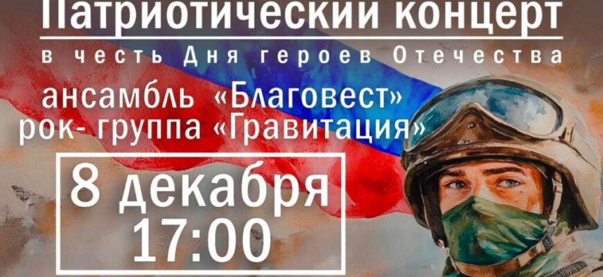 8 декабря в Городском дворце культуры Азова состоится праздничный концерт, посвященный Дню героев Отечества. В программе — выступления как традиционного ансамбля «Благовест», так и современной рок-группы «Гравитация».