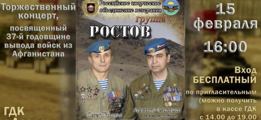 15 февраля в Городском Дворце культуры города Азова состоится памятное мероприятие, посвященное 37-й годовщине вывода советских войск из Афганистана