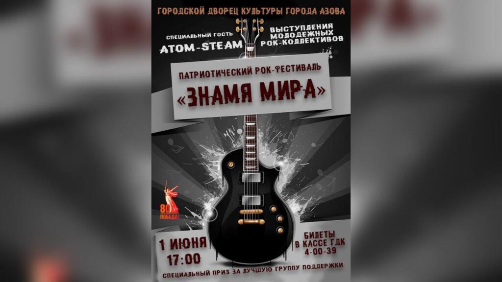 1 июня в Городском дворце культуры Азова состоится масштабный патриотический рок-фестиваль «Знамя мира», посвященный 80-летию Победы. Мероприятие начнется в 17:00 и соберет молодежные рок-коллективы, которые представят свои выступления в честь знаменательной даты.