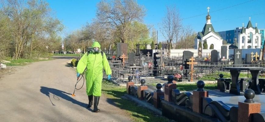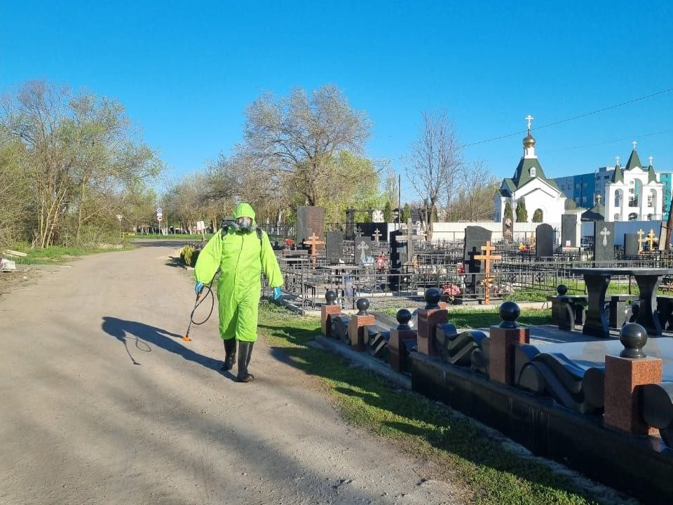 В Азове проводят сезонную обработку от клещей. Первой локацией для акарицидных работ стало городское кладбище – это связано с приближающимися поминальными днями и ожидаемым наплывом людей.