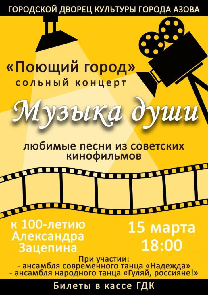 15 марта в 18:00 в Городском дворце культуры города Азова состоится большой праздничный концерт. Сольную программу «Музыка души» представит вокальный ансамбль «Поющий город»