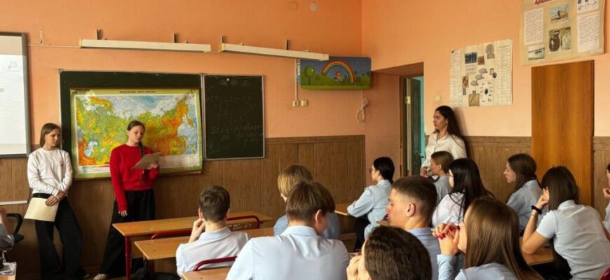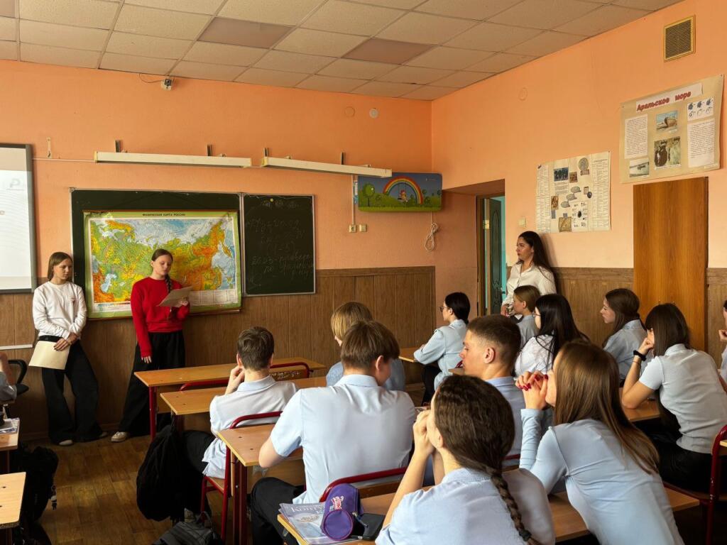 В преддверии 12-й годовщины воссоединения Крыма с Россией в школе №11 города Азова состоялось тематическое мероприятие. Ученицы школы Варвара Политова и Каролина Коломеец выступили организаторами познавательной викторины для своих сверстников