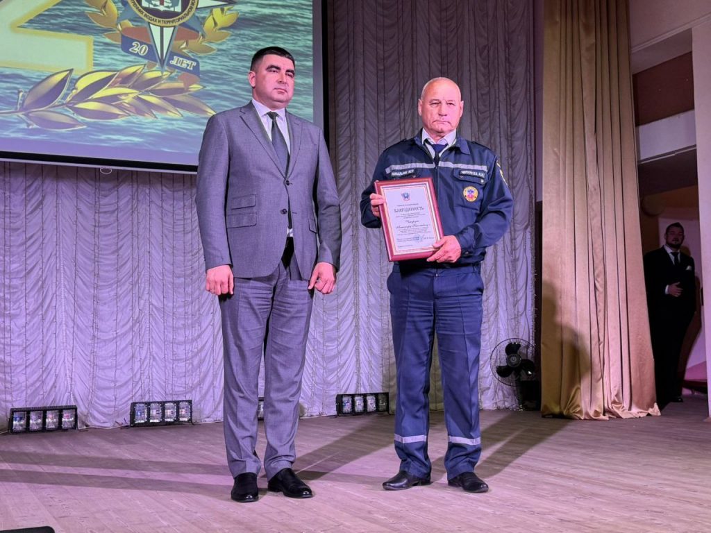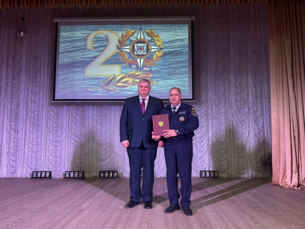 В честь юбилея отличившимся специалистам вручили почетные грамоты и благодарности, среди награждённых — и местные спасатели.