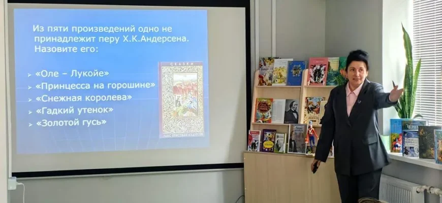 Библиотекарь И.А. Денисенко поздравила юных читателей с праздником. Дети узнали любопытные факты из биографии великого сказочника, встретились с любимыми героями — Дюймовочкой, Снежной королевой, Принцессой на горошине, Свинопасом, Гадким утёнком и другими. Для гостей подготовили захватывающие испытания: викторину по сказкам Андерсена, загадки о сказочных предметах и конкурс «Угадай героя по описанию».
