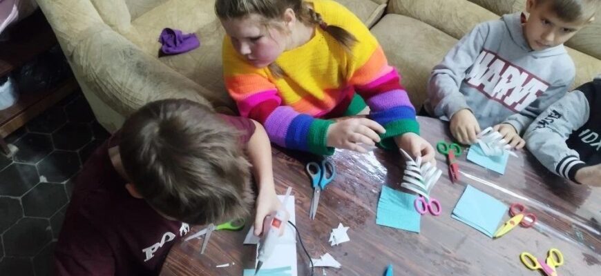 Вместо традиционной бумаги для творчества использовался цветной блестящий фоамиран — пластичный и эффектный материал. Под руководством опытного наставника дети и взрослые погрузились в технику «бумагопластики», чтобы создать объемные и пушистые снежинки. Такой современный подход к знакомому с детства символу зимы вызвал живой интерес и позволил каждому проявить фантазию.