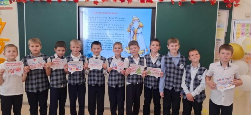 Ребята отправились в увлекательное путешествие по зимним сказкам, где узнали много интересного: как появился этот добрый праздник и где находится настоящая резиденция зимнего волшебника. С большим интересом школьники рассмотрели его дом-терем и с воодушевлением принялись за творчество — каждый создал свою неповторимую поздравительную открытку для именинника.