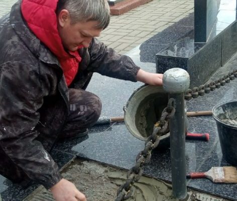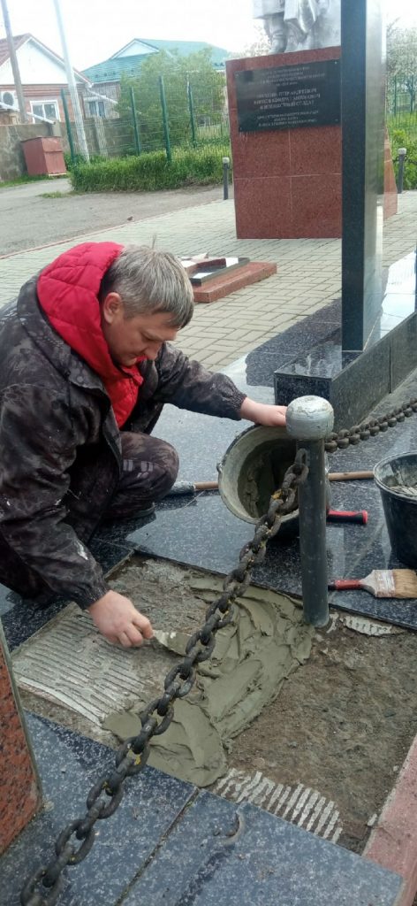 Житель хутора Задонский Виктор Фокин помог произвести работы по замене плитки у памятника героям Великой Отечественной войны
