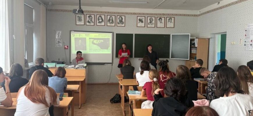 Активистами Движения Первых МБОУ Кагальницкой СОШ проведена серия лекций в 5-8 классах «Александр Пушкин. Солнце русской поэзии и креативного контента».