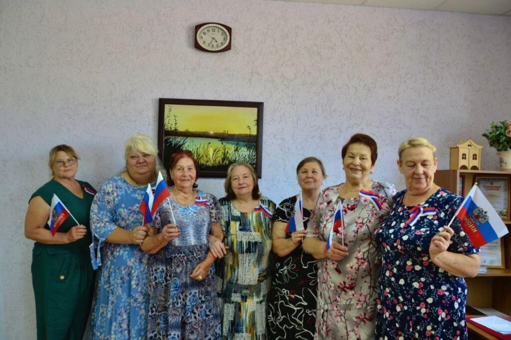 Очередное заседание клуба было посвящено Дню Государственного флага Российской Федерации. Встреча прошла в уютной обстановке за чашкой чая. Гости приняли участие в тематических играх, спели песни о Родине и вспомнили старинные русские пословицы. В рамках мероприятия также были организованы акции «Российская ленточка» и «Флаг России». Каждый участник получил в подарок трехцветную бело-сине-красную ленточку и маленький российский флажок.
