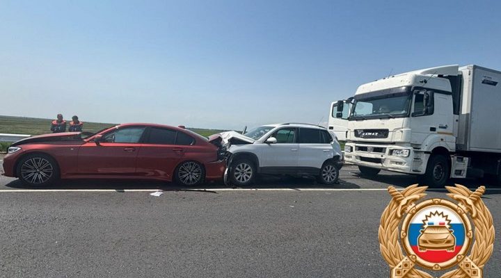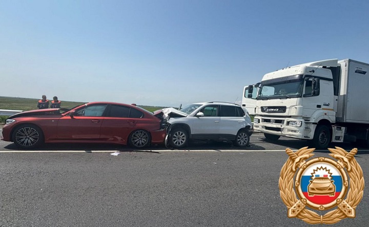 14 июня на 11-м километре автодороги Азов – Староминская (Пешковская трасса) произошло серьёзное дорожно-транспортное происшествие с участием четырёх автомобилей. По предварительным данным, авария случилась из-за того, что водитель грузовика «Камаз» с полуприцепом не соблюдал безопасную дистанцию.