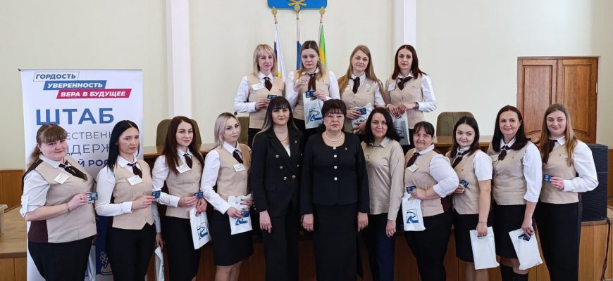 На собрании двенадцать сотрудников Многофункционального центра Азовского района вступили в ряды партии «Единая Россия». Вручение партийных билетов и значков провела секретарь местного отделения партии «Единая Россия» в Азовском районе, Елена Олейник.