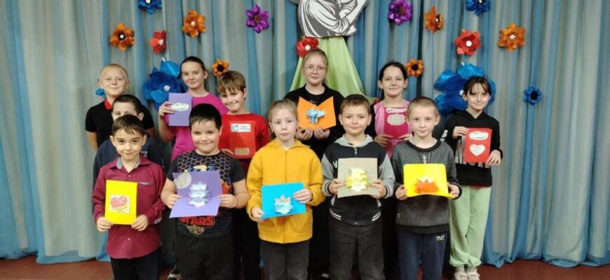 Руководитель ДК ознакомила участников с техникой изготовления объёмных открыток из картона и цветной бумаги. Задача требовала от ребят внимательности, аккуратности и терпения, так как элементы работы различались по уровню сложности.
